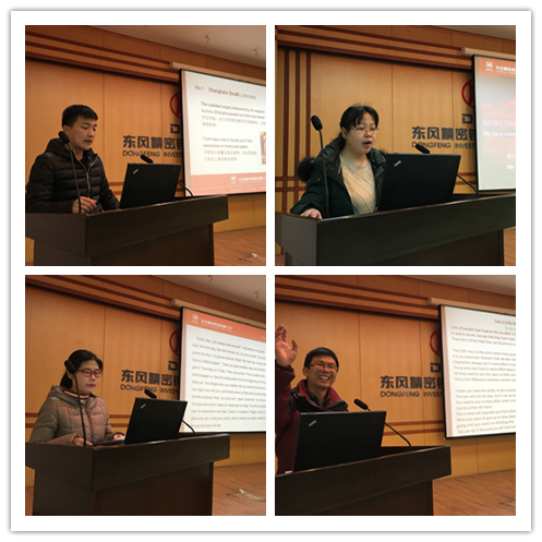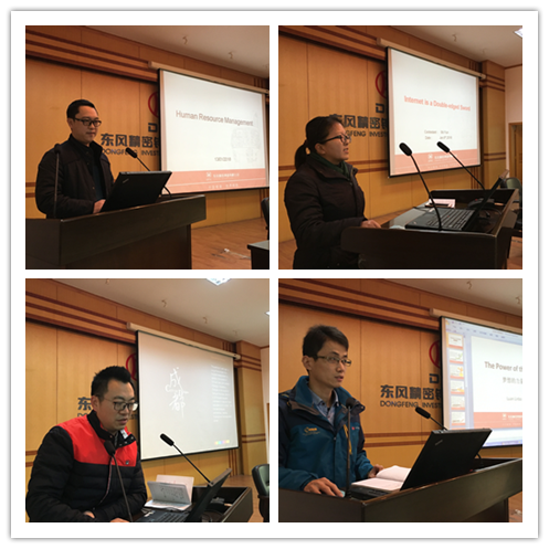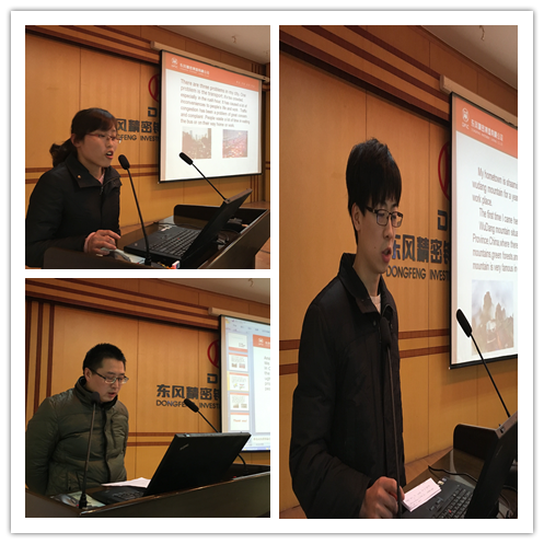 為強化學(xué)習(xí)效果并學(xué)以致用,公司組織英語競賽,分為理論測試與口語演講兩個部分。演講比賽中,聘請汽院專業(yè)英語老師為評委,通過個人介紹,主題演講與現(xiàn)場互動問答三個方面,經(jīng)過激烈的對決,史云、謝勤杰、劉悅?cè)煌疚涣星叭。競賽最后綜合成績待理論考試成績出來后再確定。