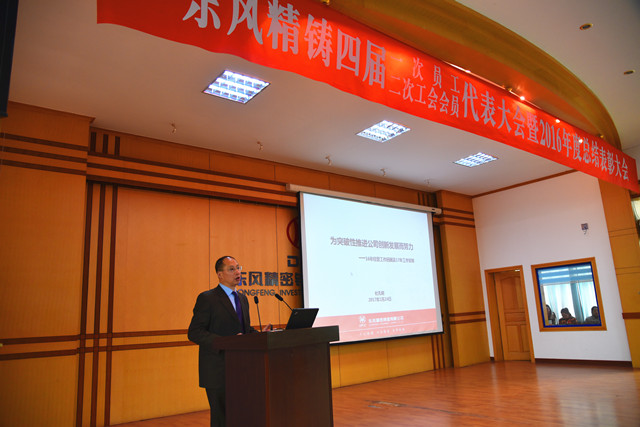 1月24日下午,東風精鑄在五樓會議中心隆重召開第四屆一次員工代表、二次會員代表大會暨2016年度總結(jié)表彰大會。